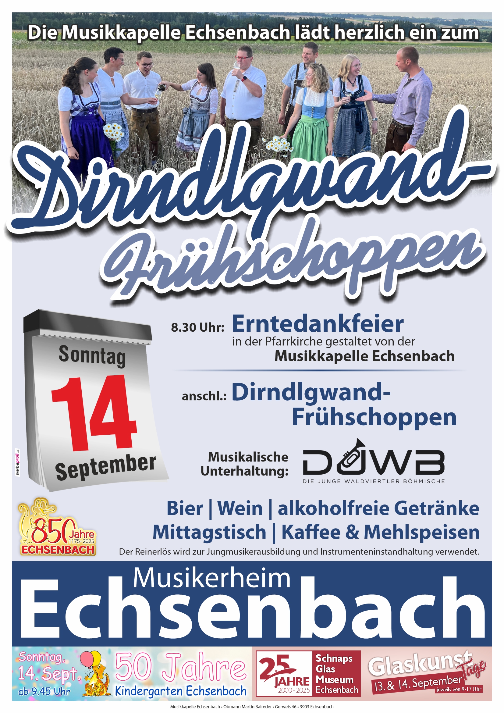 anschließend Frühschoppen mit "Die Jungen Waldviertler Böhmischen" beim Musikerheim Echsenbach unter dem Motto "Den Sonntag in der Tracht verbringen"